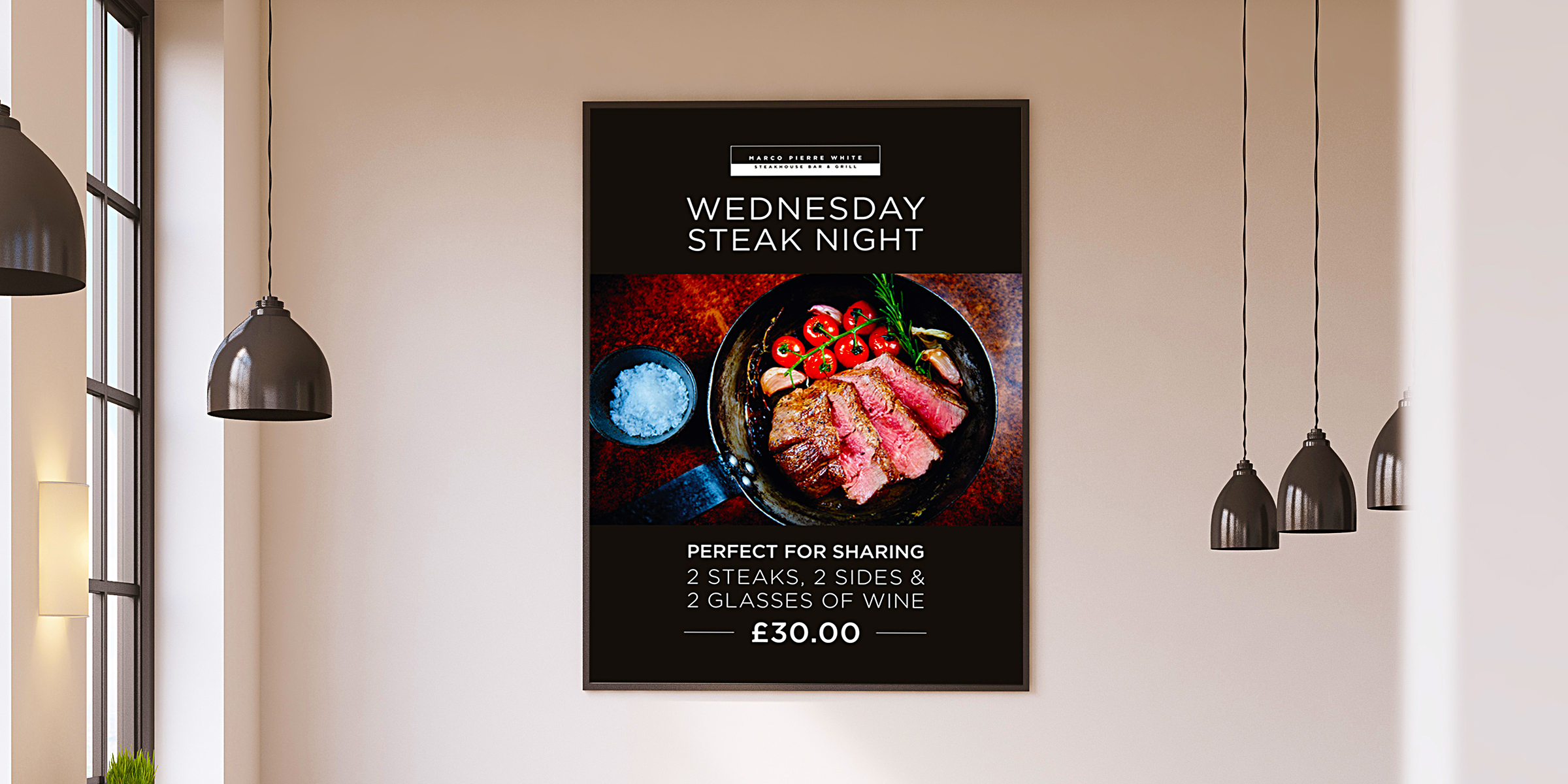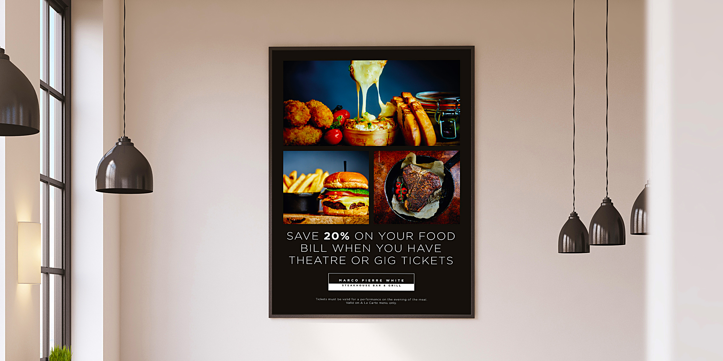Design & Print Marco Pierre White Posters cscreative February 27, 2018 Design & Print. Large Format Posters produced for Marco Pierre White’s restaurant at Hotel Indigo in Glasgow. Work undertaken for Paramount Creative. <<< Back Home