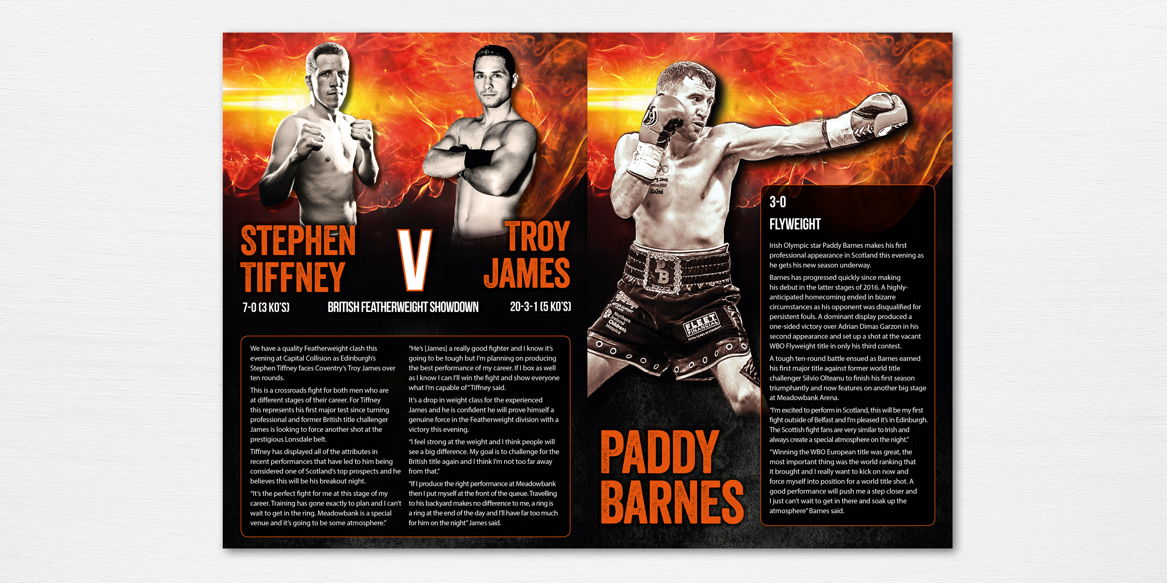 Design & Print MTK Events Boxing Programme cscreative February 27, 2018 Design & Print. Boxing programme for an event in Glasgow screened on live TV. Work undertaken for Paramount Creative. <<< Back Home